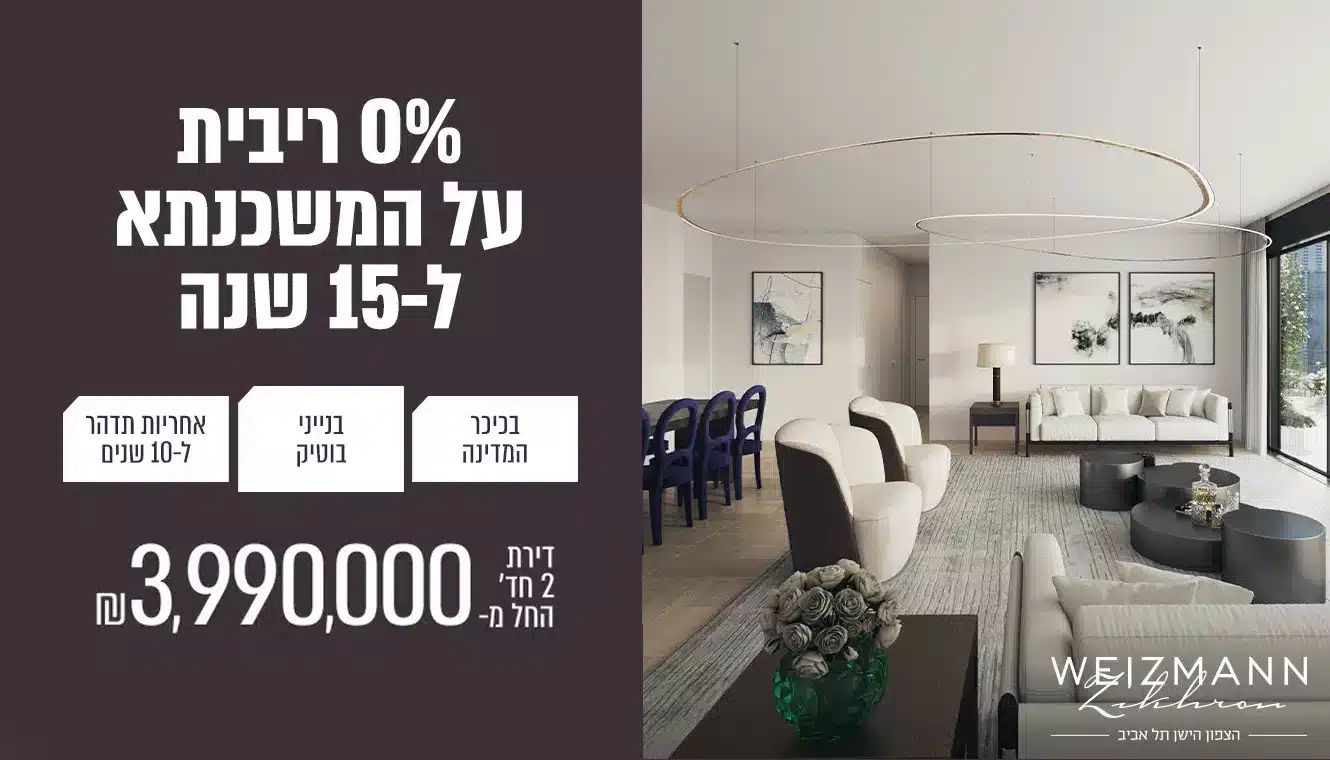 משכנתא בשווי של עד מיליון ש"ח. המבצע בתוקף עד ליום 31.10.25 ומוגבל ל-10 דירות בפרויקט, בכפוף לתקנון המבצע ונהלי בנק לאומי לישראל בע"מ וחתימת הסכם מכר מחייב עם החברה. פרסום זה אינו מהווה התחייבות להעמדת אשראי. אי עמידה בפירעון ההלוואה עלולה לגרור חיוב בריבית פיגורים ופתיחת הליכי הוצל"פ. תנאי הזכאות ותנאי האחריות כמפורט בתקנון האחריות שבאתר תדהר. ההדמיה להמחשה בלבד ואינה מחייבת את החברה. ט.ל.ח.
